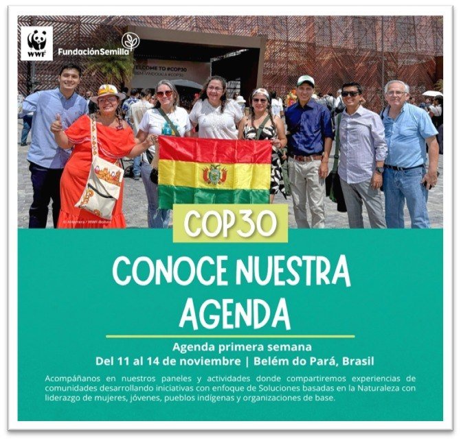 Durante la primera semana de la COP30, del 11 al 14 de noviembre estaremos participando de diferentes paneles y encuentros donde presentaremos experiencias del programa de «Iniciativas de Soluciones basadas en la Naturaleza» para mostrar cómo jóvenes, mujeres y comunidades indígenas lideran proyectos con impacto y enfrentan el cambio climático desde sus comunidades.